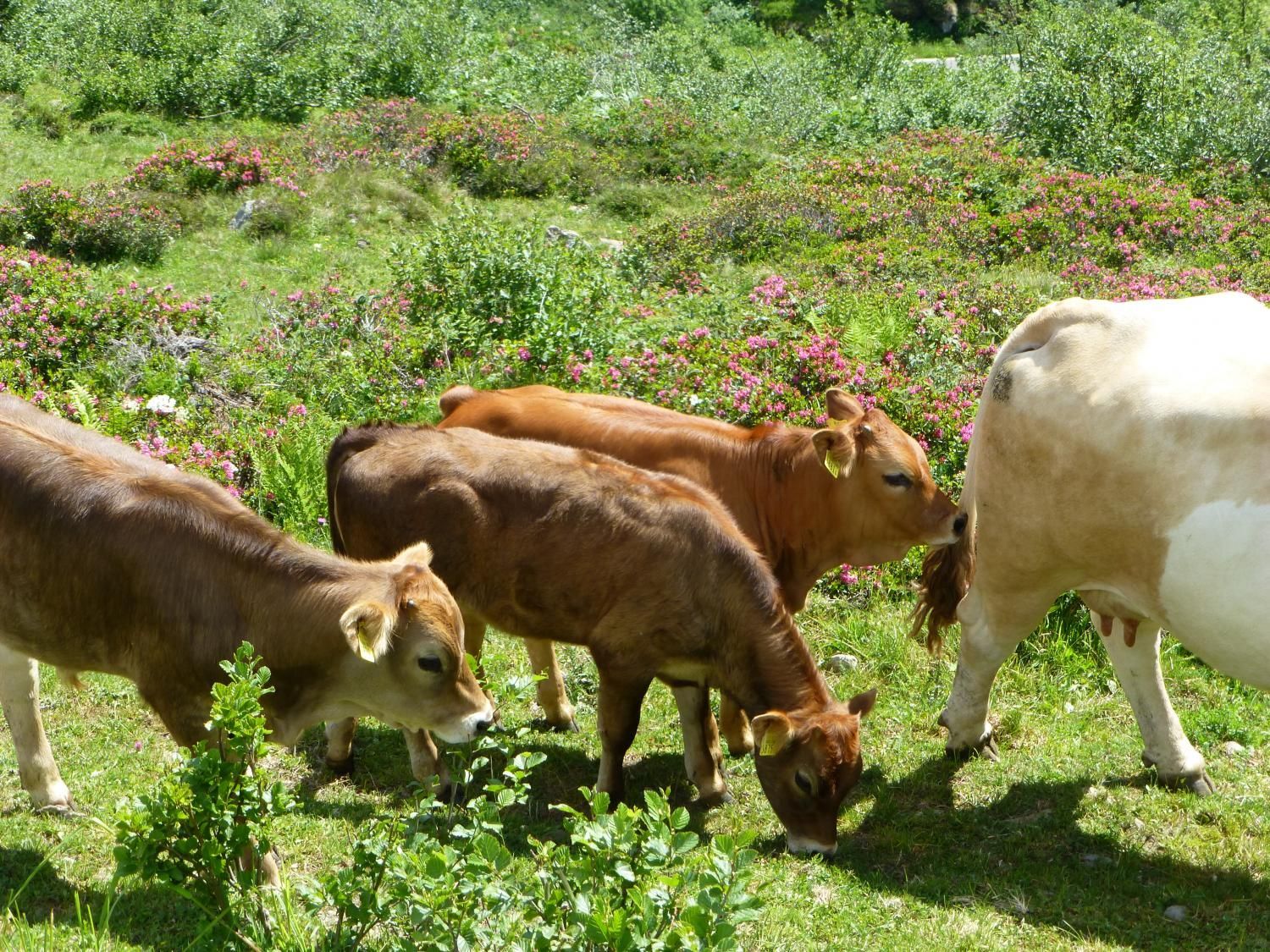 Chämleten in Hospental mit Alpenrosen und Rindern